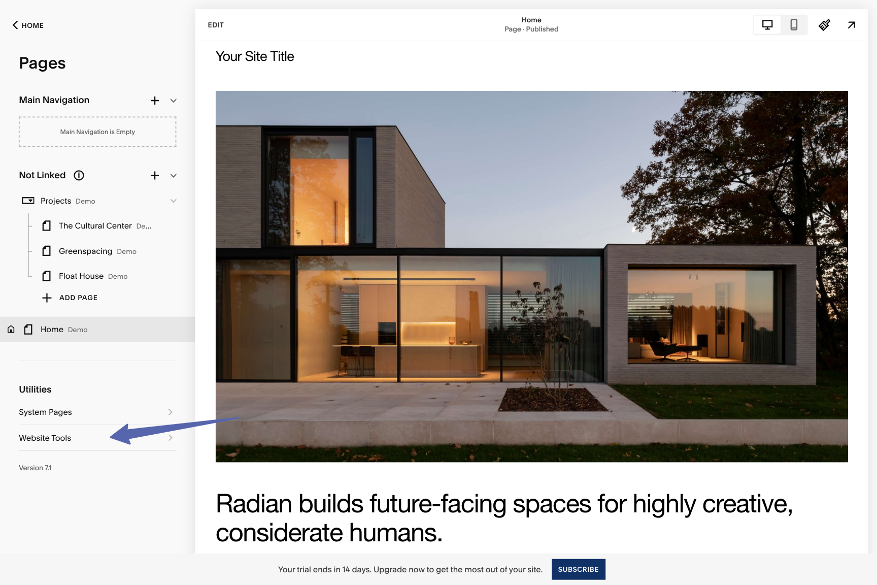 - Log in to your Squarespace account and navigate to your website.