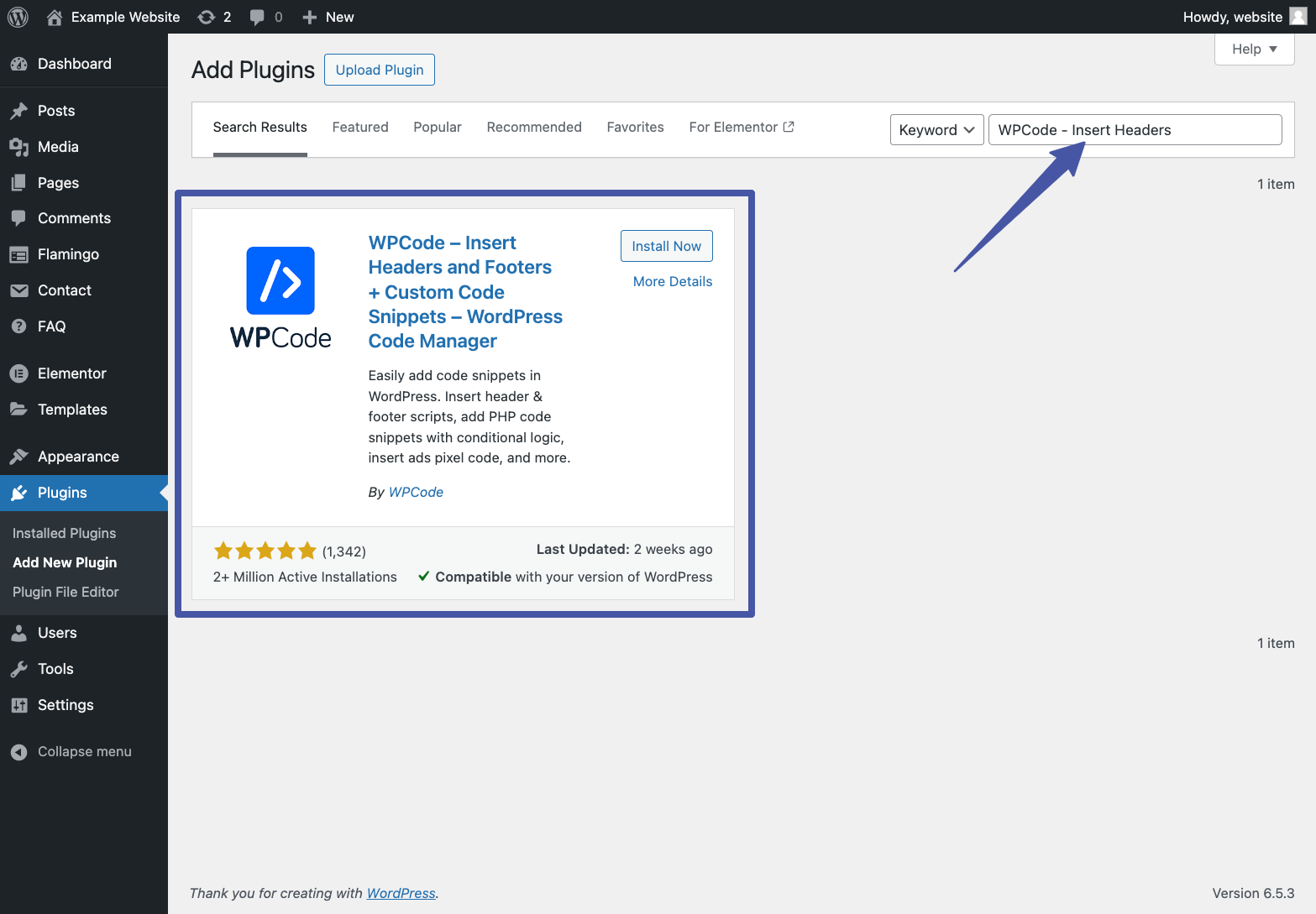 - Search for WPCode – Insert Headers and Footers + Custom Code